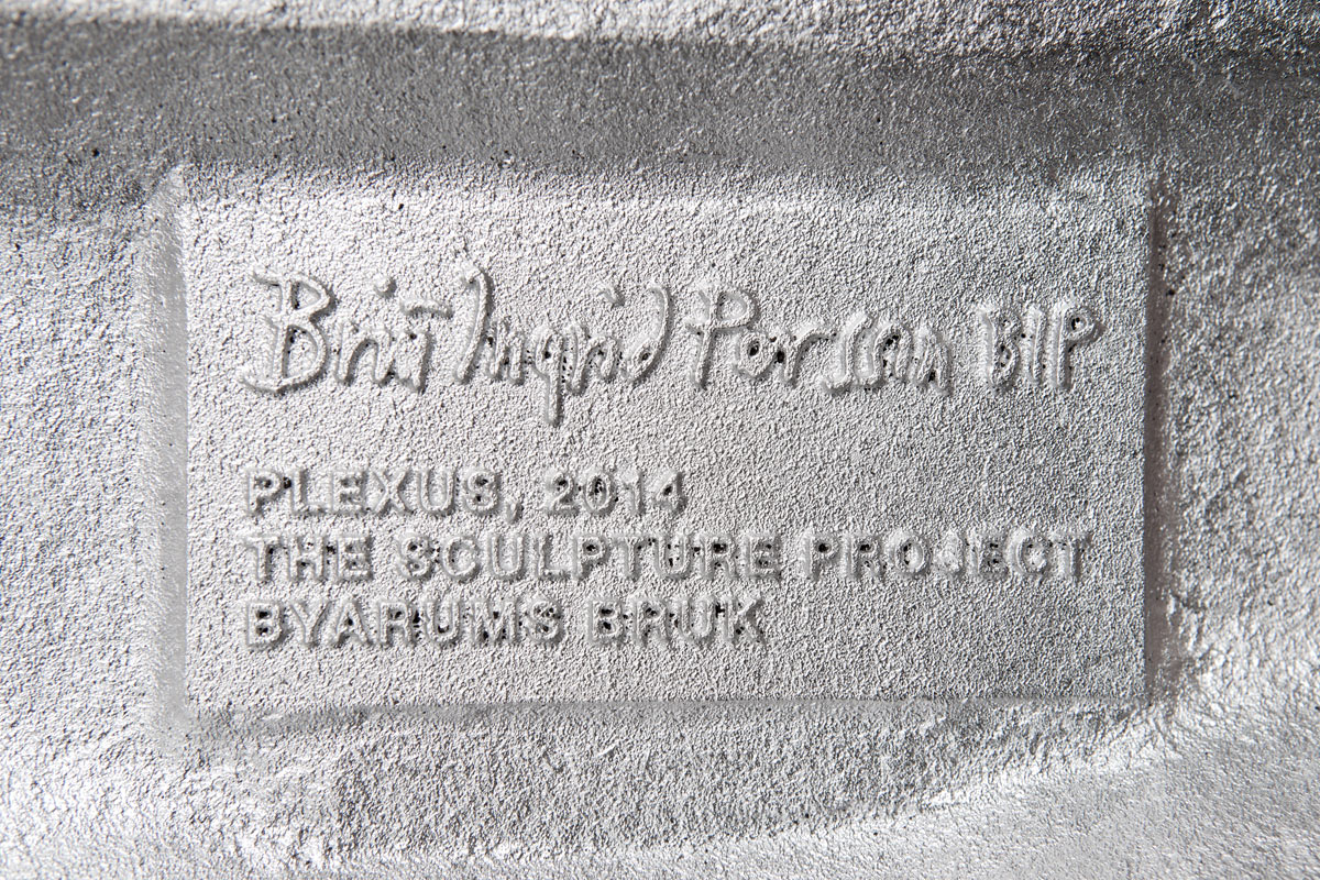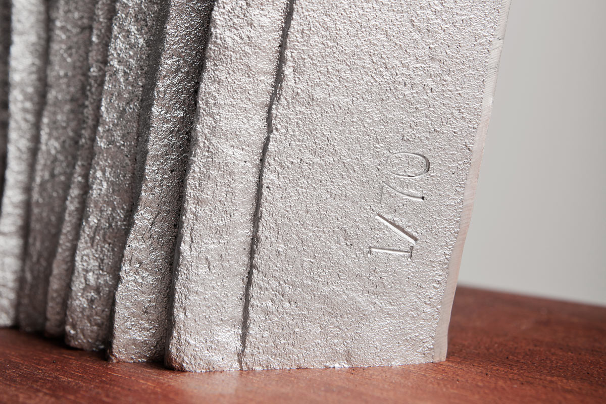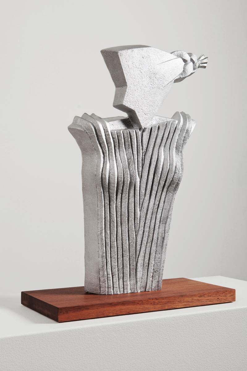 Limited edition of 70 sculptures Sand cast recycled aluminum / oiled solid mahogany Width 48 cm Height 64 cm Depth 23 cm Weight 14 kg